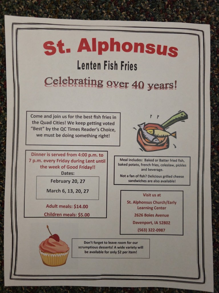 Fish Fries begin 20 February.