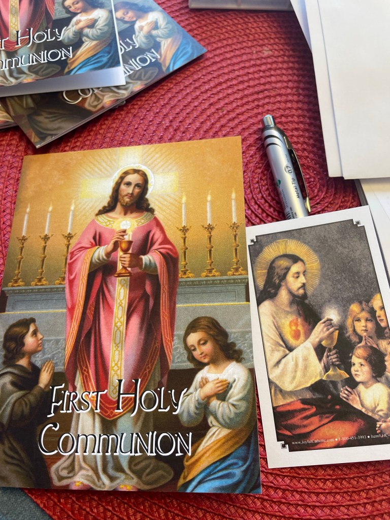 9:30 Catechism, 10:15 Confessions, 10:40 Rosary, 11:00 High Mass with First Communions, Fellowship Meal after Mass in Hall ( Davenport)