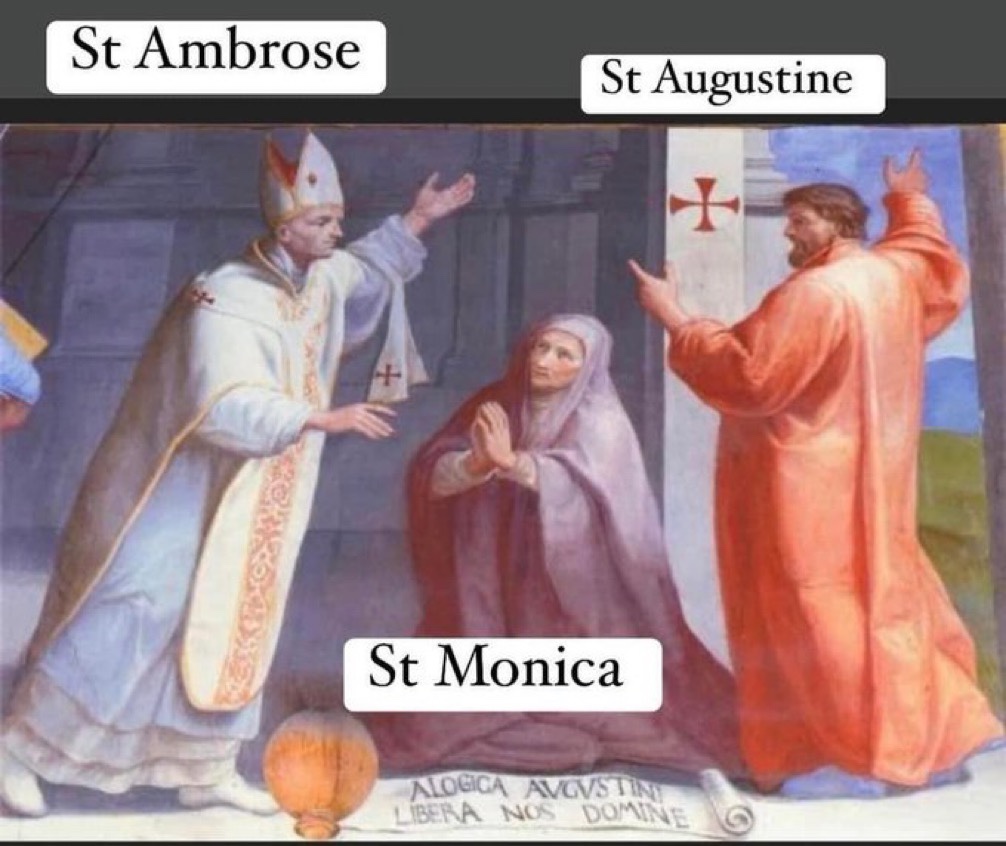 Afterward she followed him, always weeping and praying for his conversion. Once she went to the Bishop of Milan, St. Ambrose, to ask him if her son would ever convert. He replied to her with those famous words: “Woman, the child of so many tears shall never perish.” That is, she would see his rebirth through her intense and profound suffering.