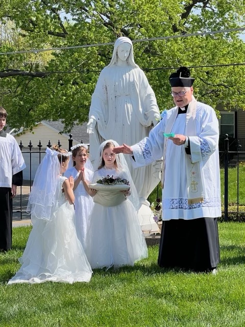 Davenport, Holy Family: No catechism today, 10:20 Confessions, 10:35 Rosary, 11:00 High Mass. May Crowning at beginning of Mass, inside; May Crowning procession to Genesis West hospital after Mass. Cupcakes for moms and children. Bring cut flowers to present to the Blessed Mother.