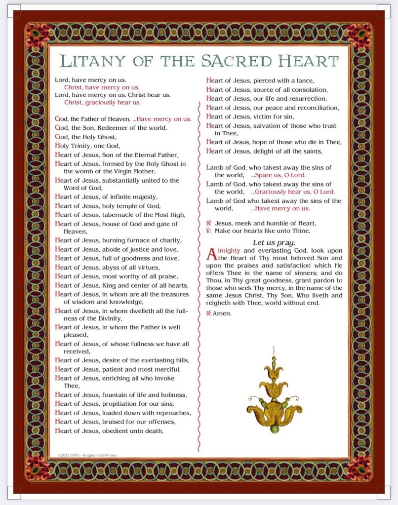 Iowa City, St Patrick: Rosary 2:05, Confessions 2:10, Low Mass with hymns 2:30. Exposition, Act of Reparation, Litany of the Sacred Heart after Mass.