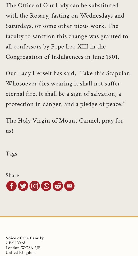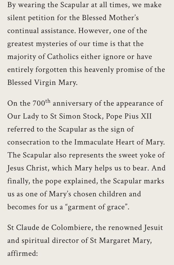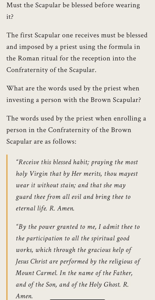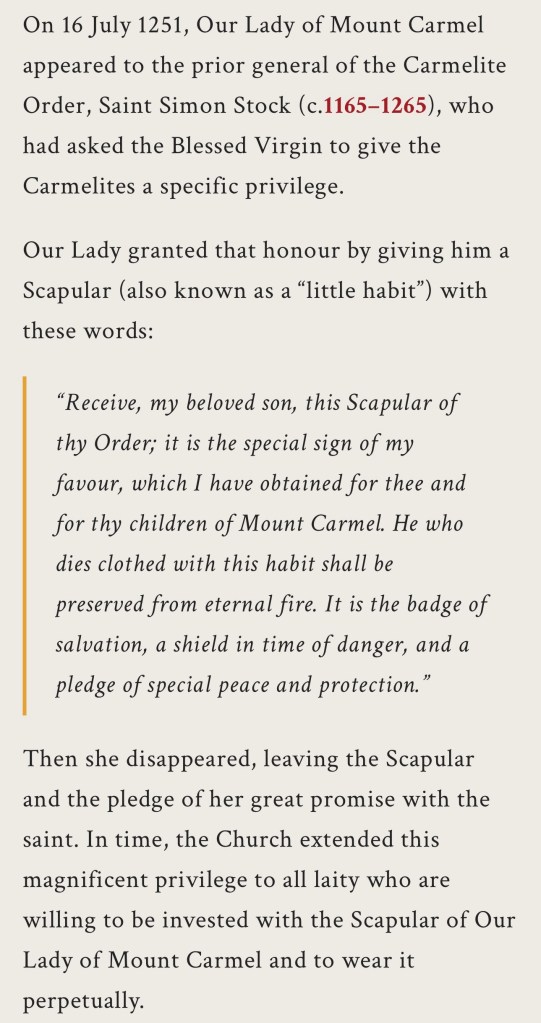 This week we’re offering enrollment in the Order of Mt Carmel and the Blessing of Brown Scapulars, immediately after Mass for those wishing to be enrolled. Adults bring a scapular; children sized we have plenty to give out (but the child must be old enough and willing to participate daily in the Rosary- one requirement). The Feast of Our Lady of Mt Carmel is Tuesday, 16 July.