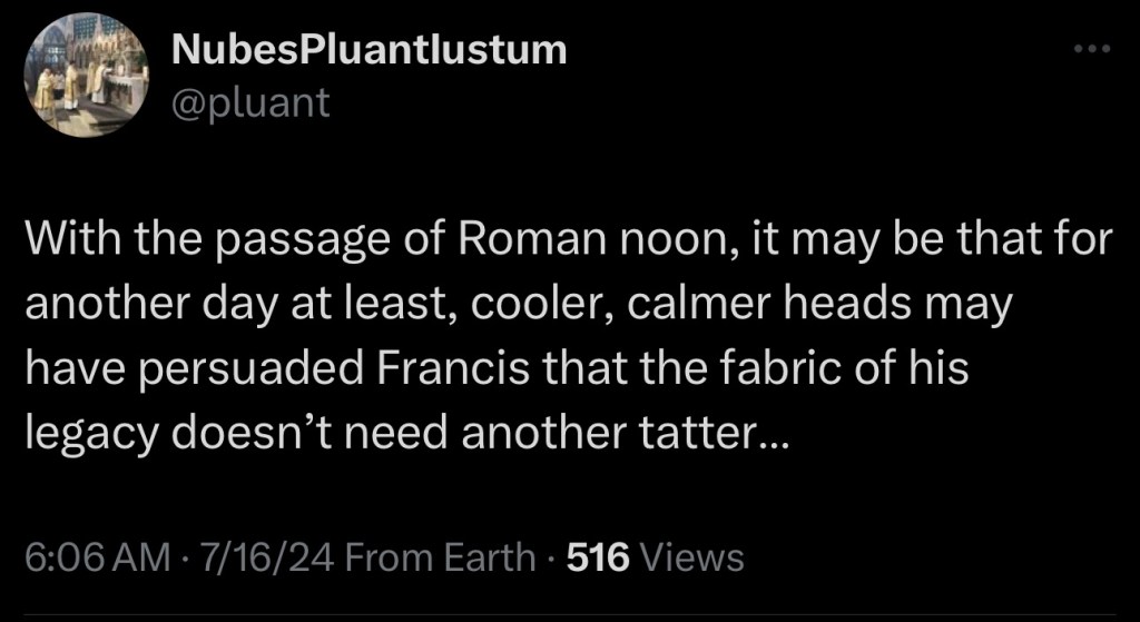 Fingers crossed Posted byfrcry2020July 16, 2024Posted inParish announcements Share this: Click to share on X (Opens in new window) X Click to share on Facebook (Opens in new window) Facebook Like Loading... Published by frcry2020 Episcopal Delegate for and Chaplain to the pre-Conciliar Community of the Diocese of Davenport, USA View more posts