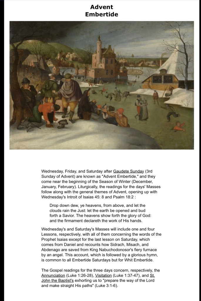 Advent Embertide- December 18- 21 Posted byfrcry2020December 17, 2024Posted inInstruction, Parish announcements https://www.fisheaters.com/customsadvent11.html Share this: Click to share on X (Opens in new window) X Click to share on Facebook (Opens in new window) Facebook Like Loading... Published by frcry2020 Episcopal Delegate for and Chaplain to the pre-Conciliar Community of the Diocese of Davenport, USA View more posts