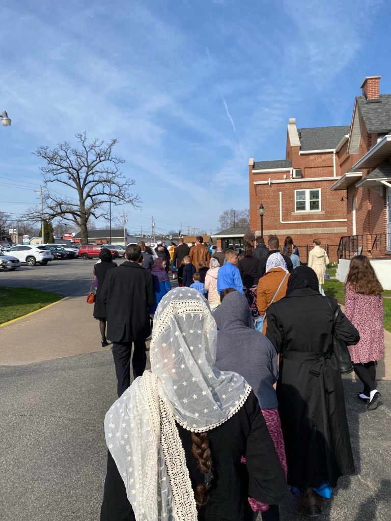 St Patrick, Iowa City: Low Mass, 2:30pm. Distribution of palms before Mass.