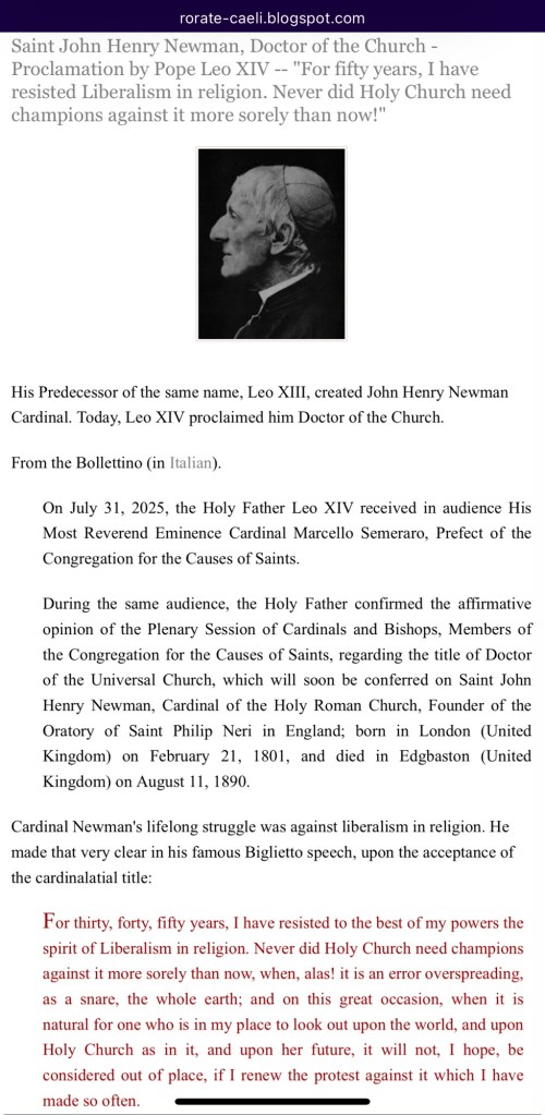 Patron of the Chaplaincy- Genius of the ‘Tractarian Movement’ in the Church of England during the 19th Century, who was the First modern Anglican priest-convert to ‘swim the Tiber’ for Rome- as did your Chaplain in 2005.