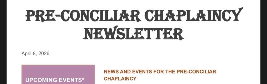 Chaplaincy Newsletter- update Posted byfrcry2020April 10, 2026Posted inParish announcements April 8, 2026.pdfDownload Share this: Share on X (Opens in new window) X Share on Facebook (Opens in new window) Facebook Like Loading... Published by frcry2020 Episcopal Delegate for and Chaplain to the pre-Conciliar Community of the Diocese of Davenport, USA View more posts