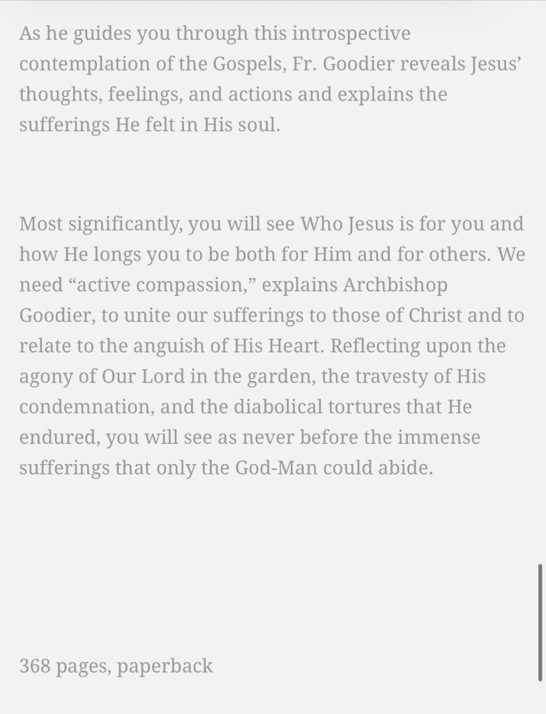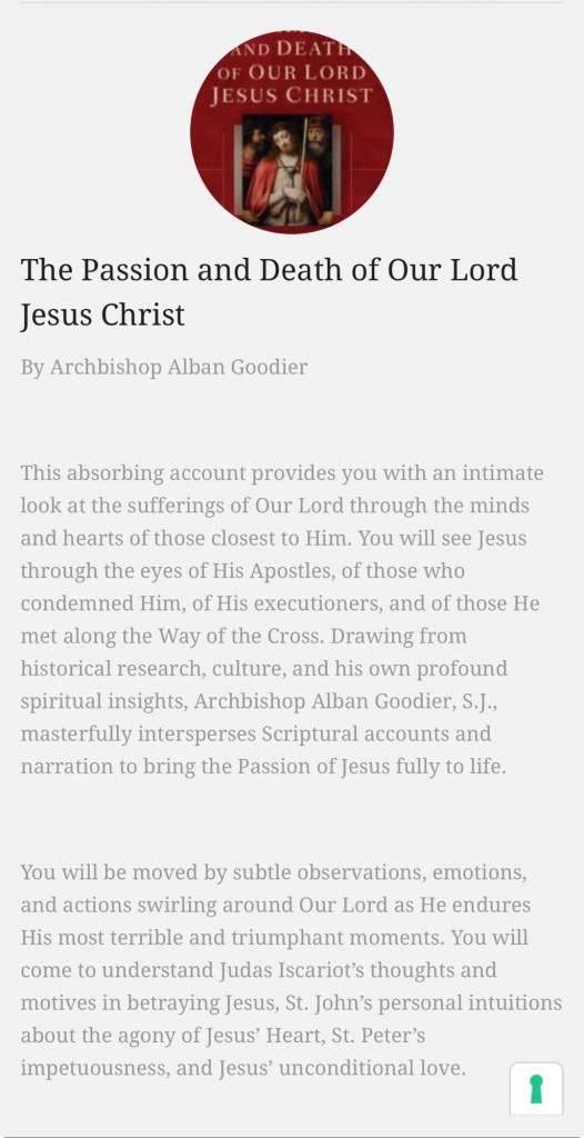 Bible Study also beginning Tuesday February 17, 6:00pm, Rectory parlor, St Alphonsus Church. Passion and Death of Our Savior Jesus Christ. Class will be an hour. You don’t have to read or purchase the text to participate