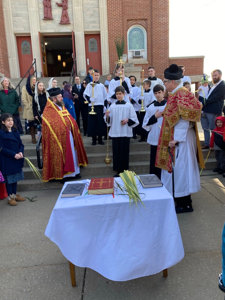 Our Liturgy of Palm Sunday begins today in front of the church for the blessing of palms and procession while singing All Glory Laud and Honor