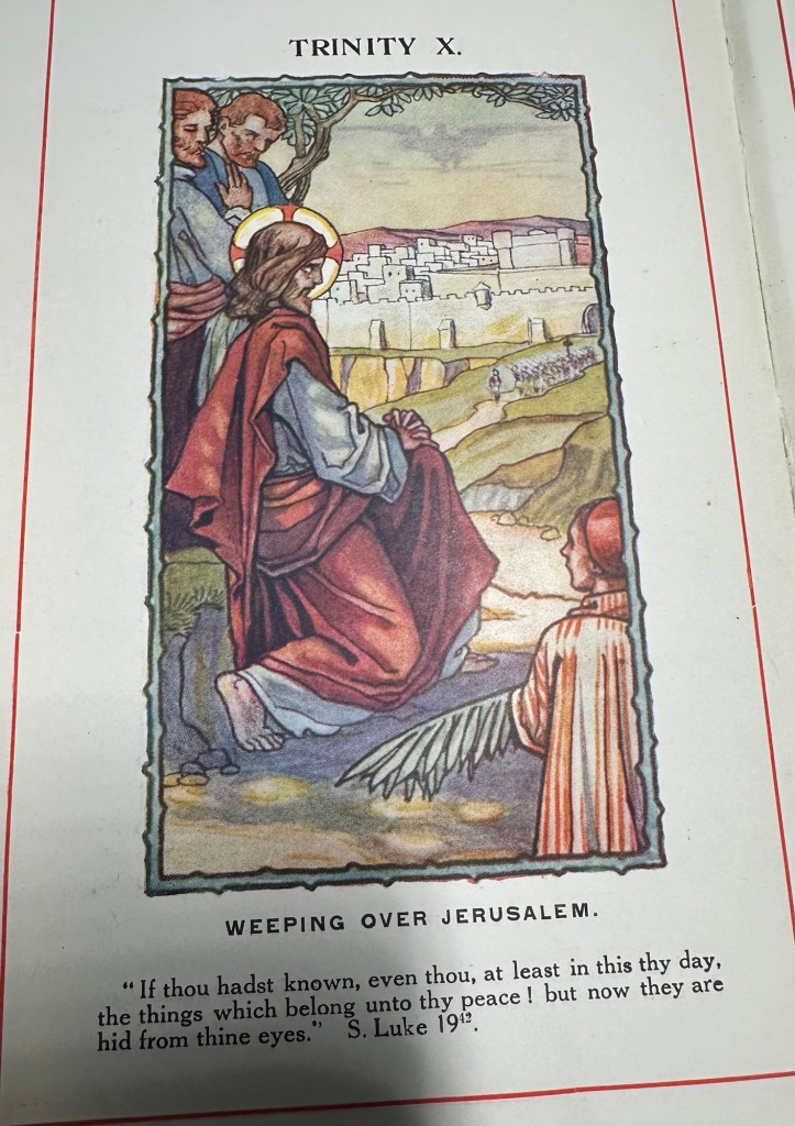 These seven sorrows are often represented in art by a sword — or three or seven swords — piercing Mary’s immaculate heart. This relates to the prophecy of the old man Simeon we heard about at Candlemas, when, after Our Lady pesented the Child Jesus at the Temple, he told her, “Behold this Child is set for the fall, and for the resurrection of many in Israel, and for a sign which shall be contradicted; And thy own soul a sword shall pierce, that, out of many hearts, thoughts may be revealed.”